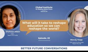Perspectives Perspectives Shaping a Better Future Blog Series Kiedy dane stają się głosem uczniów – wykorzystanie wyników badań do poprawy nauczania i uczenia się Learn More Using data to improve teaching and learning begins with listening to students Learn More Trading plastic for trees: The power of letting students lead Learn More What kind of leadership will it take to transform education? Learn More Beyond the Box: When listening to students becomes leading with them Learn More What is the future of education—and who decides? Learn More Better Future Conversations Better Future Conversations: What Will It Take to Reshape Education So We Can Reshape the World? Learn More Better Future Conversations: AI and the Future of Education Learn More Doing hard things and why it matters for the future of education Learn More News UNESCO and Teach For All’s Global Institute for Shaping a Better Future Announce Collaboration to Reimagine Education for a Better Future Learn More Global education leaders and changemakers come together at the inaugural Global Forum For Shaping a Better Future Learn More Teach For All launches Global Institute for Shaping a Better Future Learn More